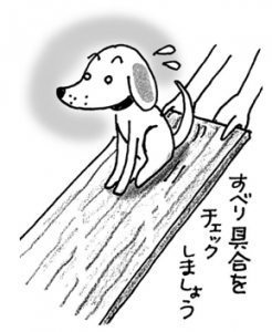 滑る床の上で犬が体を支えるためには、股関節や後肢に大きな負担がかかります。