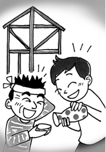 上棟式(建前とも呼びます)は、無事棟が上がったことを喜び感謝するものですが、儀式というよりも施主が職人さん達の労をねぎらう行事と言えるでしょう。